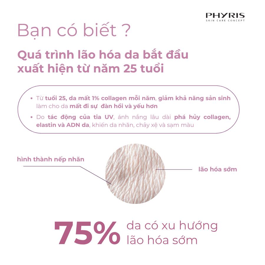 Từ tuổi 25, mỗi năm làn da mất 1% collagen tự nhiên. Đến năm 35 tuổi, khách hàng của bạn đã mất gần 10–15% độ đàn hồi, dẫn đến: